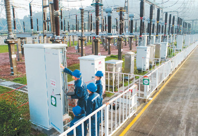 持续高温天气给电力供应带来考验。电力部门全面增加设备巡视次数,及时消除各类隐患。图为6月16日,南方电网广东中山供电局工作人员正在对当地一处220千伏智能化变电站加强设备检测,确保迎峰度夏期间电网安全可靠运行。孔德淇摄(人民视觉)