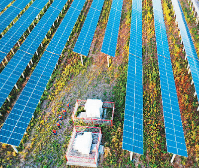 太阳能光伏发电等清洁能源近年来在电力供应中的作用日益增大。图为日前,在安徽省亳州市涡阳县临湖光伏电站,国网涡阳县供电公司员工在对发电设备进行巡检。娄延旭摄(人民视觉)
